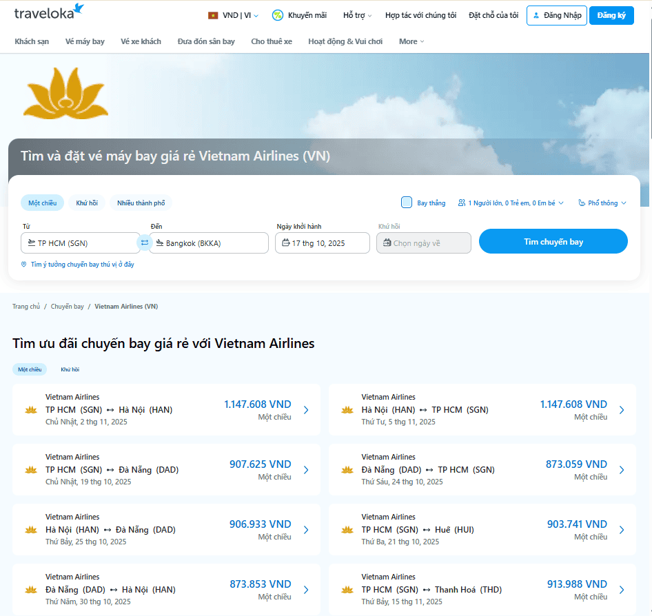 Cách tìm vé máy bay Vietnam Airlines giá rẻ trên Traveloka